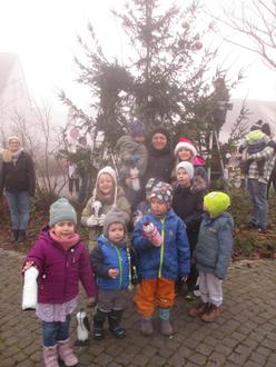 Nach einer kurzen Ansprache durch den Bürgermeister Frank Robber versammelten sich die Kita-Kinder, um gemeinsam mit den Erziehern und Eltern zu singen. Auch wenn dem ein oder anderen vor Aufregung die Stimme ganz leise wurde, hatten alle viel Spaß. Anschließend durften die Kinder ihre gebastelten Kunstwerke am Weihnachtsbaum aufhängen, um dann ganz stolz zu sagen: „Das habe ich gebastelt“!