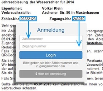 Beispielfotos zur Ablesung und Anmeldung über das Internetportal