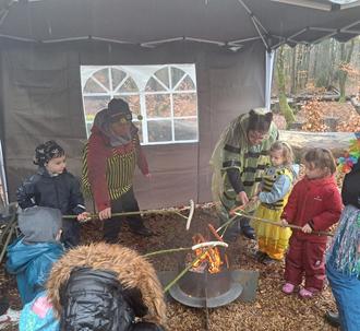 Ein Höhepunkt des Tages war das gemeinsame Essen am kleinen Lagerfeuer, wo Würstchen auf dem Stock gegrillt wurden und mit mitgebrachten Leckereien in gemütlicher Runde genossen wurden. Diese herzliche Atmosphäre spiegelte den Geist der Kita Amselnest wider, die sich der naturnahen Kindergartenzeit und der Förderung des Verständnisses für die Umwelt verschrieben hat.