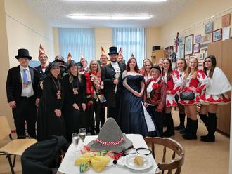 Auch in diesem Jahr stattete das Prinzenpaar der KG Narrhalla Buhlenberg e. V. samt Hofstaat, Sitzungspräsidentin und Elferrat den Seniorinnen und Senioren einen Besuch ab. Prinzessin Nadja I. und Prinz Kevin I. stellten sich den Narren in einer unterhaltsamen Rede vor und bedankten sich bei der Vorsitzenden mit einem Orden für die Einladung.