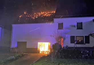 In der Silvesternacht kam es in Züsch in der Hoffeldstraße zu einem Brand einer Scheune, die unmittelbar an ein Wohnhaus angebaut ist. Die ersten Notrufe gingen um kurz nach drei Uhr ein. In dem angrenzenden Haus mussten sich die Bewohner ins Freie retten. Ein Bewohner wurde in ein Krankenhaus eingeliefert. Die Brandursache ist derzeit noch nicht geklärt. Ein technischer Defekt kann nicht ausgeschlossen werden. Es entstand ein Sachschaden in Höhe von ca. 50.000 Euro. Die Feuerwehren konnten ein Übergreifen der Flammen auf das Wohnhaus verhindern. Im Einsatz war eine Notärztin aus Birkenfeld, jeweils ein RTW aus Thalfang und aus Hermeskeil. Zudem waren ca. 50 Einsatzkräfte der Feuerwehren aus Züsch, Damflos, Neuhütten, Otzenhausen, Hermeskeil und Muhl vor Ort. Die Polizeiinspektion Hermeskeil war mit zwei Streifenwagen im Einsatz.