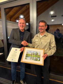 Revierförster Jörg Clemens wird von Stadtbürgermeister Christoph König verabshiedet