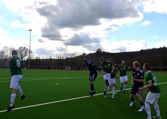Von Anfang versuchten die Hausherren mit viel Ballbesitz-Fußball zum Ziel zu kommen. Dabei überzeugte vor allem ihr Spielmacher Pascal Neumann, der über die Außenpositionen sehr viele Angriffe initiierte. Die Defensivabteilung der Gäste war allerdings während der gesamten 90 Minuten immer im Bild. Meist war schon vor dem Strafraum der Gäste Schluss, denn zum einen war es der als Sechser aufgebotenen Sven Eckes, überwiegend unterstützt von Fabian Weber und Pascal Eli die sehr viel wegräumten. Dahinter agierten die beiden Innenverteidiger Maurice Speicher und Kapitän Robin Moser sehr routiniert und wurden über die rechte Seite von Tim Gugenbiehl sowie über links von Simon Kolz nachhaltig unterstützt. Die meiste Gefahr der Gäste ging von einer großen Anzahl von Eckbällen aus, die überwiegend von Steve Kirchen mit sehr viel Speed und Effet in den Strafraum gebracht wurden. Dabei erwies sich der bärenstarke Gästetorhüter Luca Thömmes als Meister seines Faches, der die Bälle vor den zum Einschuss bereiten Stürmern der Gastgeber meist mit konsequenter Faustabwehr klärte. Aber auch auf der Linie konnte der Gästetorhüter überzeugen, so in der 50. Minute als er einen fulminanten Fernschuss von Niklas Kirsten mit einer tollen Parade entschärfen konnte. Kurz danach bot sich Fabian Weber kurz vor der Strafraumgrenze freistehend eine Chance zum Torschuss, der allerdings zu harmlos ausfiel, um dem Gästetorhüter Jordan Nikamgoue Probleme zu bereiten.