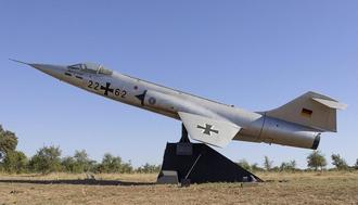 Auch die abgebildete Maschine flog eins in einem Geschwader der Bundesluftwaffe. Heute dient sie als Denkmal vor einem Militärflugplatz.