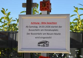 Dieses Schild an den Bussteigen am Donatusplatz weist auf den Start des Busverkehrs am 14. März hin.