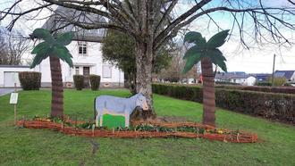 Auf einer Eselin zieht Jesus in Jerusalem ein, er marschiert nicht ein. Er steht für Frieden und Friedfertigkeit. In Geisfeld ist diese Installation seit Palmsonntag im Pfarrgarten zu bewundern.