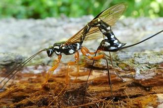 Das Weibchen der Holzwespen-Schlupfwespe verfügt über einen schlanken Legebohrer, der die Länge ihres Körpers übertrifft und weit über den Hinterleib hinausragt. Damit legt es je ein Ei auf eine tief im Holz verborgene Holzwespenlarve ab. Das Insekt ist daher für die Forstwirtschaft besonders nützlich.