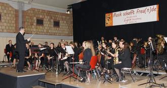 Zu Beginn begrüßte der neue 1. Vorsitzende Felix Knippel die Gäste, unter ihnen Bürgermeister Stefan Ding und den Kreisbeigeordneten Martin Alten. Nachdem die rd. 50 Akteure auf der Bühne Platz genommen hatten, ging der Reigen der musikalischen Darbietungen los. „Appalachian Aventure", ein Medley amerikanischer Volksmusiken machten den Anfang. Dann die Filmmusik des Science-Fiction Klassikers „Star Trek" von Jerry Goldsmith. Wer kennt sie nicht die Akteure des Raumschiffs Enterprice mit Captain Pickar. Mit „Funky Afternoon" von Markus Götz folgte ein Gute-Laune-Stück, schwungvoll und gespickt mit Jazz, Pop und Funk. Hier glänzten die Solisten Felix Knippel, Julius Knippel und Nils Knippel zusammen mit der Schlagzeuggruppe. „Schmelzende Riesen" hat Armin Kofler komponiert. Die Komposition hat das Thema Klimaerwärmung und schmelzende Gletscher zum Inhalt und endet mit einer Schlittenfahrt an den Nordpol. Vor der Pause einer der musikalischen Höhepunkte des Abends. „Abba Symphonic", arrangiert von Michael Jerg. Hier brachte das Orchester eine Reihe großer Songs von Agnetha, Anni-Frid, Benny und Björn, die Akteure der bekannten schwedischen Pop-Gruppe ABBA zu Gehör, die in den 70er und 80er Jahren des letzten Jahrhunderts große Erfolge feierte und deren Musik unsterblich ist. Wer kennt sie nicht, wie „Waterloo, The Winner takes it all, Mamma Mia, Money, Money, Money, SOS, Dancing Queen, Super Troper" und viele andere mehr.