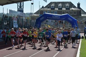 Bei dem gemeinsamen Aufwärmen vor Ort wurde trotz ein klein wenig Nervosität schon deutlich. Und so wurde das Aufwärmen während der Läufe immer wieder unterbrochen, wenn es hieß: „Da ist ein blaues Trikot, das ist eine/r von uns!“ Mit riesigem Enthusiasmus wurde das eigene Schulteam kräftig angefeuert – und das nicht umsonst. Der Applaus wurde mit einem erfolgreichen Tag und noch mehr strahlenden Gesichtern belohnt. Dabei konnte sich das Gymnasium Hermeskeil in allen sechs Läufen von der besten Seite präsentieren.