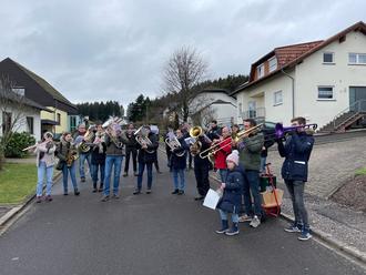Die Idee dahinter ist, dass die Musiker als Fußgruppe durch das Dorf ziehen und in den Straßen Gusenburgs ein paar Lieder spielen. Von „Sierra Madre“ und „Sweet Caroline“ über „Anker gelichtet“ bis hin zu „Auf der Vogelwiese“ und „Böhmischer Traum“ konnten sich die Zuhörer, welche aus den Häusern gelockt wurden, Stücke wünschen, die dann live performt wurden.