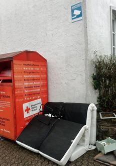 Kaum hat der Stadtrat einen Grundsatzbeschluss zum Thema Videoüberwachung gefasst, findet sich an den Altkleidercontainern des DRK gegenüber dem Neuen Markt wieder einmal Sperrmüll, den ein unverschämter Zeitgenosse hier abgeladen hat (oben). Selbst der Hinweis auf eine Überwachungskamera hat ihn offenbar nicht gestört; oder er hat ihn bei seinem vermutlich nächtlichen Treiben überhaupt nicht wahrgenommen.