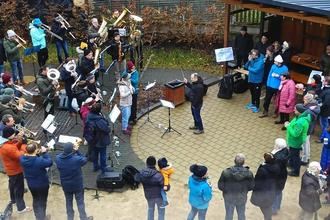 Mit einer Auftaktveranstaltung startete der Musikverein Lyra Gusenburg 1924 e.V. am Samstag, dem 06.01.2024 seine Veranstaltungsreihe zum hundertjährigen Vereinsjubiläum und eröffnete damit auch die Gusenburger Kirmes. Beim Marsch durch die Gemeinde veranstaltete der Musikverein an drei Stationen Platzkonzerte, bei denen sich die Besucher die Musikstücke wünschen durften. Die letzte Station fand im Generationentreff mit Schulgarten statt (Foto), damit schrieb der Musikverein ein weiteres Mal Geschichte, denn dies war die erste offizielle öffentliche Veranstaltung in dieser Begegnungsstätte nach der Einweihungsfeier. Das insgesamt sechsstündige „MV 100 WARM-UP“ war eine gelungene Einstimmung auf die Veranstaltungshöhepunkte, die von März bis November 2024 noch folgen werden.