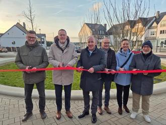 Ein besonderer Tag für Hermeskeil: Andreas Hermanns, Innenminister Michael Ebling, Christoph König, Stefan Ding, Kathrin Schlöder und René Treitz eröffneten Mitte Dezember nach 15 Monaten Bauzeit feierlich den Donatusplatz.