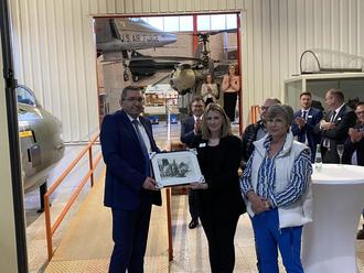 Zum Abschluss der kurzweiligen Regionalbeiratssitzung stellten Mutter und Tochter, Astrid und Anna Junior, in Vertretung ihres Vaters und Ehemannes Peter Junior, die imposante Flugausstellung vor und gingen hierbei auf sehr interessante Exponate ein. Den Wenigsten dürfte bekannt sein, dass sich innerhalb der Flugausstellung sogar Exponate befinden, die weltweit einzigartig sind und sogar schon in Filmen mitwirkten, wie z.B. in dem allseits bekannten Film „Top Gun“ mit Tom Cruise. (ChKr)