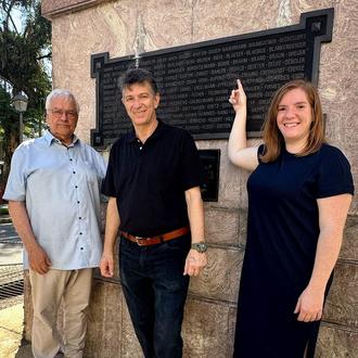 … schickten am Sonntag Stadtbürgermeisterin Lena Weber und Dittmar Lauer. Sie waren auf Einladung des Festkomitees zur 200-Jahrfeier der deutschen Einwanderung in den südamerikanischen Staat gereist. Am Rande der Feierlichkeiten trafen sie u.a. Nachfahren von Auswanderern aus der Hochwaldregion. Das Bild wurde in Petrópolis im Bundesstaat Rio de Janeiro aufgenommen, wo auf Tafeln an einem Obelisk die Familiennamen aller deutschen Einwanderer zu lesen sind, die sich hier niedergelassen hatten. Dazu gehört auch der Name Dupre. Der am 14. Februar 1800 in Muhl geborene Holzhauer Johann Düpre und seine Frau Katharina Noel aus Neuhütten wanderten 1845 mit sechs Kindern nach Petropolis aus und gehörte zu den Mitbegründern der Stadt (RuH Nr. 43/2021). Er war der Cousin eines Vorfahren von Dittmar Lauer. Auch Lena Weber hat entfernte Verwandte in Brasilien; zu ihnen gehört der brasilianische Nationaltorhüter Alisson Becker, Weltfußballer des Jahres 2019 (s. RuH Nr. 49/2021). Mit auf dem Bild ist Marcio Haubrich, der Vorsitzende des „Clubs 29 Junho“, mit dem Dittmar Lauer eine Absichtserklärung über eine Zusammenarbeit unterzeichnete. Der 29. Juni 1845 wird noch heute als Gründungstag von Petrópolis gefeiert.