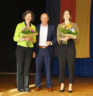 Abschied von Manuela Schrenk und Linda Schirra, den guten Geistern im Vorzimmer,, vlnr (Foto: bb)
