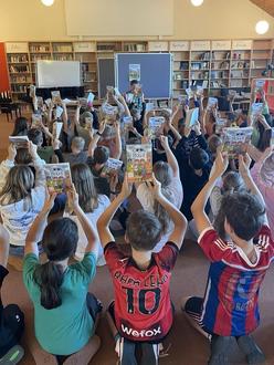 Frau Schmitt sponserte jedem unserer fast 100 Fünftklässler ein eigenes Exemplar, um die Leselust der Kinder zu fördern und ihnen die Freude am Lesen näherzubringen.