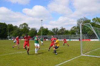 Natürlich wollten die Jungs der ersten Mannschaft ihrer Reserve in nichts nachstehen und legten zunächst mit sehr viel Elan los. Die Innenverteidigung der Gastgeber, die von Sven Gaspers und Sven Eckes gebildet wurde, glänzte mit einer geschickten Spieleröffnung und fanden immer wieder Anspielstationen vor allem bei Christian Alt, aber auch bei Pascal Eli und Jens Gaspers, die im offensiven Mittelfeld und abwechselnd in der Spitze agierten. Über die rechte Außenbahn machte der.junge Fabian Weber viel Betrieb und glänzte immer wieder mit gut getimten Flankenbällen. So war es kein Zufall, dass Christian Alt einen scharf hereingebrachten Flankenball von Weber mit einem herrlichen Kopfball in der 13. Minute zum 1:0 abschloss. In der 23. Minute ließen die Gastgeber vorbildlich den Ball zirkulieren und nach einem herrlichen Steckpass von Jens Gaspers auf Christian Alt ließ dieser mit einem platzierten Flachschuss Torhüter Marius Becker keine Chance. Überhaupt dieser Alt, er betätigte sich nicht nur als Torjäger, sondern war überall zu finden, führte klug Regie und avancierte zum auffälligsten Spieler seines Teams.