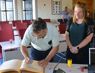 Bürgermeister Dominique Charpentier aus St. Fargeau trug sich ins Goldene Buch der Stadt Hermeskeil ein.