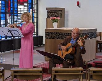 Am vergangenen Samstag war das Duo PALATINO zu Gast im Josef Krankenhauses. In der angenehmen Atmosphäre der Kapelle präsentierten Christiane Meininger (Querflöte) und Volker Höh (Gitarre) kammermusikalische Edelsteine: Wer kennt sie nicht die Melodie von Schuberts „Ave Maria“, das Thema aus Mozarts Klaviersonate A Dur KV331 oder Bachs „Air“ aus der 2. Orchestersuite. Neben gemeinsamen Vorträgen der Künstler erklangen solistisch von Volker Höh Klangbilder spanischer Gitarrenmusik unter anderen von Granados und Mangoré. Dabei kam auch eine historische spanische Gitarre zum Einsatz. Bei Variationen zu einer berühmten Opermelodie von Rossini begeisterte Christiane Meininger mit virtuoser Beweglichkeit und edlem Ton. Duo Palatino entführte die Zuhörerinnen einerseits in das edle Land der feinsinnigen Melodien und begeisterte andererseits bei den Rhythmen extrovertierter Tänze. Am Ende gibt es dankbaren Applaus und Zugaben. Veranstalter war der Förderverein Kirchenmusik in der Pfarrei St. Franziskus Hermeskeil.