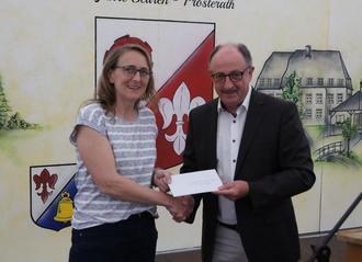 Der scheidende Verbandsbürgermeister Hartmut Heck überreicht der Ortsbürgermeisterin Petra Adams-Philippi ein Geschenk der VG. Es war, so Hartmut Heck, seine letzte Amtshandlung. (Foto: bb)