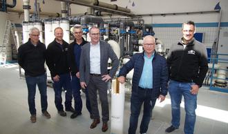 Bürgermeister Stefan Ding und die leitenden Herren der Wasserversorgung stellen sich dem Fotografen
