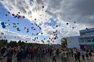 Ein erster Gang in den neuen Klassenraum wurde dazu genutzt, sich gegenseitig vorzustellen und eben jene Wünsche und Träume zu notieren, die man mit dem Wechsel an die neue Schule verbindet. Diese wurden am Ende des Tages steigen gelassen, damit sie – wenn sie doch schon fliegen können – auch wahr werden. 108 glückliche Gesichter, ebenso viele bunte Ballons und wahrscheinliche eine Vielzahl an Hoffnungen und Wünschen für den Schulstart im Sommer. Mögen sie alle in Erfüllung gehen!