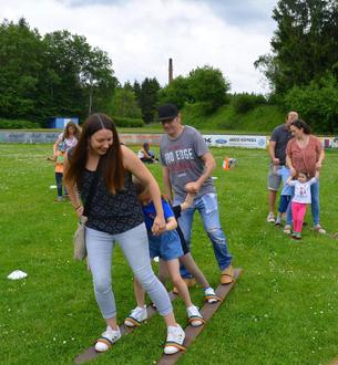 Am vergangenen Sonntag waren fast 350 Kinder mit ihren Eltern ins Waldstadion gekommen. Sie waren der Einladung der Initiative „Verein (t) für Toleranz und Respekt“ gefolgt, um an einer Kinder-Olympiade der besonderen Art unter dem Motto „Für ein buntes Miteinander“ teilzunehmen. Auf dem Rasenplatz des Waldstadions waren verschiedene Spielparcours aufgebaut, die von den Kleinsten zusammen mit den Eltern oder größeren Geschwistern spielerisch bewältigt werden konnten. Dazu gehörten u.a. verschiedene Geschicklichkeitsparcours, eine Kleinspielfeld zum Fußballspielen und eine Hüpfburg. Eine besondere Attraktion für die Kinder war eine Kuh aus Kunststoff, die gemolken werden konnte. Dem Wunsch eines Kleinen mit dem Ausspruch: „Mama, ich möchte gern ein Tiger sein“, konnte unproblematisch nachgekommen werden, denn die Akteurinnen an der Kinderschminkstation waren in der Lage (fast) alle Wünsche zu erfüllen. Auch die Verpflegung durfte nicht fehlen. Am Grill gab es leckeren Schwenkbraten, Würstchen und Hamburger von Markus Linn vom Ehrigs-Hof, der sich auch als großzügiger Sponsor der Veranstaltung betätigte. Der selbstgebackene Kuchen, Kaffee. sowie die Milch-Shakes konnten gegen eine freiwillige Spende verköstigt werden.