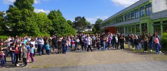 Im Rahmen des bewährten Kennenlerntages wurden diese Fragen für die Schülerinnen und Schüler der umliegenden Grundschulen, die nunmehr auf die IGS Hermeskeil wechseln, beantwortet. Und Gott sei Dank gab es keine Tränen, sondern nur freudige und von jetzt an auch erwartungsfrohe Kindergesichter. Vom oberen Schulhof, auf dem die Klassen aufgerufen wurden, ging es dann in die Klassen, in denen erste organisatorische Dinge, Papierkram also, geregelt werden mussten. Höhepunkt des Nachmittags war jedoch das erste gemeinsame Projekt der neuen fünften Klassen. Jede von Ihnen hatte nämlich die Aufgabe, einen Baum auf dem unteren, campusähnlichen Bereich des Schulhofs zu pflanzen, also Setzen eines Baumes, mit Pflanzstäben verankern, Erde und Mulch dazu und abschließend ausreichend wässern. In allen Fällen hat das schon gut geklappt, ein gutes Zeichen für das Zusammenwachsen der Klassengemeinschaft und damit für das Anwachsen der Bäumchen. Damit sie wachsen und gedeihen, so wie die dann bald jüngsten der IGS-Schüler eben auch.