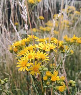 Mitte Juni beginnt die Blütezeit für das Jakobskreuzkraut, auch Jakobsgreiskraut genannt. Man kennt die leuchtend gelbe Krone des meistens etwa einen Meter hoch wachsenden Korbblütlers hauptsächlich von Weg- und Straßenrändern, von Böschungen und trockenen Weide- und Brachflächen. In den letzten Jahren hat der Bestand auch im Hochwaldraum teilweise stark zugenommen, wofür mehrere Gründe ursächlich sein können: zum Einen die Tatsache, dass die Sommer der vergangenen Jahre sehr trocken waren, zum Anderen weil im Hinblick auf den Artenschutz immer mehr Blühflächen seltener gemäht werden; auch die EU-weiten Flächenstilllegungsprogramme dürften dazu beigetragen haben.