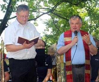 Pfarrer Peter Winter und Dekan Christian Heinz segneten die neue KiTa ein.