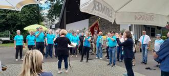 Bestes Feierwetter bescherte Petrus am Sonntag dem 10. Juli den Sängerinnen und Sängern des Quartettvereins „Concordia“ Reinsfeld. Sie begingen im Rahmen der vierten Auflage ihres Fahnenfestes auch den 110. Geburtstag des Vereins. Zahlreiche Freunde des Chorgesanges bevölkerten am Nachmittag den Platz vor dem Musikpavillon, der von fleißigen Helfern zu einem schattigen und schmucken Aufenthaltsort verwandelt worden war, um den flotten Weisen des Geburtstagskindes mit seinen zwei Formationen und der drei Gastensembles aus Trier-Euren, Fell/Riol und Schöndorf zu lauschen. Nach der Begrüßung durch den Vorsitzenden Heribert Eiden gratulierte Ortsbürgermeister Uwe Rossmann dem Jubilar und überreichte einen Scheck. Wie schon eine Woche zuvor beim 25. Geburtstag des Chorschattens lobte er die Aktivitäten des Vereins und den Zusammenhalt und die gegenseitige Unterstützung. Ohne die, so Rossmann, wäre die Organisation eines solchen Festes nicht möglich. Michael Müller führte durchs Programm und erfreute die Zuhörer mit einer kleinen Geschichte auf Reinsfelder Platt, als die Kirchenglocken um 15 Uhr den Aktiven eine Zwangspause verordneten. Nach dem Motto „Wo die Fahne hängt, wird ausgeschenkt“ sorgten Kaffee und Kuchen sowie leckere Spezialitäten vom Grill und kühle Getränke dafür, dass die Gäste nach den gut zwei Stunden Programm noch lange blieben und mit dem einen oder anderen aus dem Stegreif vorgetragenen Liedchen erfreut wurden. Nach der „offiziellen“ Geburtstagsfeier geht es nun für die Aktiven weder ans Probenwerk für das nächste Vorhaben in diesem Jahr, das Projekt „Klangmomente“, das mit einem Konzert am Samstag, dem 29. Oktober seinen Abschluss findet.
