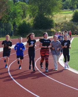 Auch in diesem Jahr bleibt das Gymnasium Hermeskeil seiner Tradition treu und setzt damit erneut ein Zeichen für Bewegung und Sport: Knapp 170 Unterstufenschülerinnen und -schüler legten am Dienstag, 4.7.2023, auf dem Sportplatz des Gymnasiums erfolgreich ihr Laufabzeichen ab. Dabei motivierten sich die Klassengemeinschaften gegenseitig so vorbildlich, dass alle Starter die 1. Stufe des Laufabzeichens vom Deutschen Leichtathletikverband erreichen konnten, die meisten sogar die 2. Stufe. Die jungen Läuferinnen und Läufer erhielten großartige ermunternde Unterstützung durch unterstützende Klassenpatinnen und -paten, Lehrkräfte, die Schulleitung und Vertreter des TV Hermeskeil, dem langjährigen Kooperationspartner der Schule.