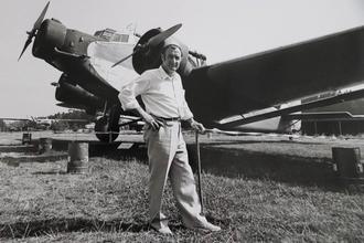 Leo Junior, der Gründer der Flugausstellung, vor einem seiner Prachtstücke, eine JU 52
