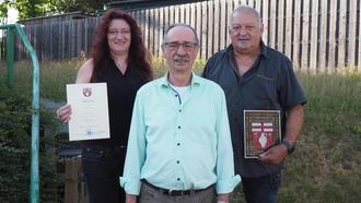 Vlnr: Corinna Litz, Ortsbürgermeister Siegfried Joram und Willi Großmann