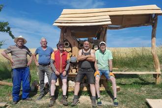 Heute haben es nützliche Insekten schwer: sie finden in unserer "kultivierten" Naturlandschaft kaum noch adäquaten Unterschlupf. Grund genug für vier Ehrenamtliche (von rechts nach links: Harald Schmitt, Marco Adams, Winfried Barthen und Manfred Adams), auf Initiative des Jagdvorstehers Winfried Barthen nach 2022 ein weiteres Insektenhotel auf der Gemarkung Beuren zu bauen. Unterstützung fand die Gruppe in Hubert Ludwig (ganz links), dessen zwei Mini-Bienenhotels in die große Anlage eingebaut wurden. Nicht nur die Bewohner des Insektenhotels, sondern auch Wanderer können auf einer integrierten Sitzbank einen wundervollen Blick Richtung Erbeskopf sowie 10 umliegende Hochwaldorte genießen.