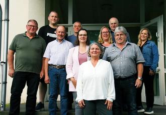 Der neue Gemeinderat mit Ortsbürgermeisterin Nassdtja Raabe-Roschlaub (Mitte vorn), den beiden Beigeordneten (re. und li. hinter ihr) und Theo Palm (hinten re.).