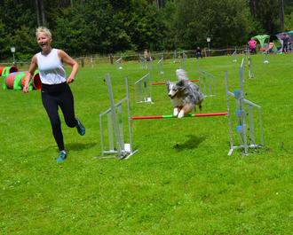 Den Besuchern, die sich am ersten Wochenende der Stadtwoche auf dem Hermeskeiler Hundesportplatz eingefunden hatten, bot sich ein Bild ähnlich wie beim Pferdesport. Das kommt nicht von ungefähr: Der Brite Peter Meanwell, der 1977 bei einer großen Hundeausstellung in London erstmals Übungen mit Hunden als Pausenattraktion durchführte und damit die Hundesportart Agility kreierte ließ sich vom Springreiten inspirieren. Agility – zu Deutsch Behändigkeit, Gewandtheit – ist ein Freizeitsport für Hund und Mensch. In dessen Mittelpunkt steht die Überwindung eines Hindernisparcours durch den Hund in einer festgelegten Reihenfolge und innerhalb einer gegebenen Zeit. Der neben herlaufende Hundeführer zeigt ihm dabei mit Körpersprache und Hörzeichen den Weg, darf aber weder Hindernisse noch Hund anfassen.