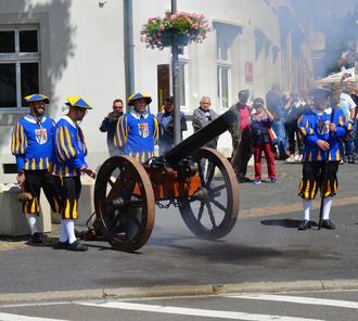 Böllerschüsse der Stadtsoldaten vor der Eröffnung der Stadtwoche.