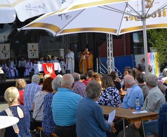 Open-Air-Gottesdienst auf dem Festplatz mit etwa 200 Teilnehmern