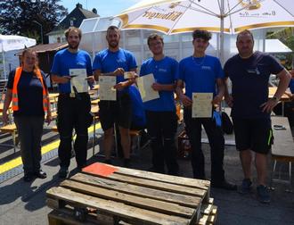 Sieger beim handwerker-Battle wurde das Team von der Bedachungsfirma Petto, rechts und links vom Beirat Stadtwoche Werner Schmidt und Kornelia Lemm.