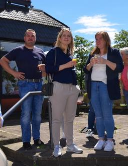 Besuch aus dem Bundestag - Verena Hubertz mit Stadtbürgermeisterin Lena Weber beim Sektempfang vor dem Rathaus.