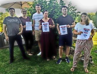 Mitglieder des Festausschusses präsentieren den Plakat-Entwurf zum Festival.