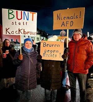 Am vergangenen Freitag versammelten sich etwa 180 Menschen in Beuren, um für Menschlichkeit, Toleranz und eine wehrhafte Demokratie einzutreten. Die Demonstration, organisiert vom Bündnis „Bunter Hochwald“, fand vor dem Hintergrund einer Wahlveranstaltung der AfD im Bürgerhaus statt, zu der mehrere Kandidaten für die Bundestagswahl am 23. Februar angekündigt waren.