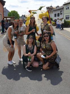 Dass die Feier zum 100. Geburtstag nicht schon im vergangenen Jahr begangen wurde war Corona geschuldet. Der Verein wurde am 25. Oktober 1922 gegründet, was durch eine Urkunde belegt ist. Der Vereinsgründer hieß Josef Schaneng, dessen Enkel Werner Adams hat am Sportplatz eine Ausstellung mit Dokumenten und Bildern aus der 100jährigen wechselhaften Geschichte des Vereins zusammengestellt. Am Anfang bestanden die Aktivitäten aus Theateraufführungen und Vereinsfahrten. Dann wurde der Verein nach der Machtübernahme der Nazis verboten. Nach dem Krieg ging es ab 1948 weiter mit Theateraufführungen, aber auch mit der Durchführung von Kappensitzungen und Fastnachtsumzügen. In den 70er Jahren wurde es dann etwas ruhiger um den Verein, bis Gertrud Kirchen die Aktivitäten wieder aufleben ließ. Neben dem Theaterspielen wurden jetzt wieder Fastnachtsumzüge und Kappensitzungen organisiert. Auch die Durchführung von Nachtumzügen wurden ins Programm aufgenommen, können aber heute wegen enormer Auflagen der Genehmigungsbehörde nicht mehr durchgeführt werden.