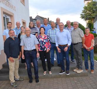 Der neue Ortsgemeinderat Beuren mit Bürgermeister Harald Schmitt (2.v.li.) eingerahmt von den Beigeordneten Marco Adams und Nicole Kaiser. Daneben der neugewählte VG-Bürgermeister Stefan Ding.