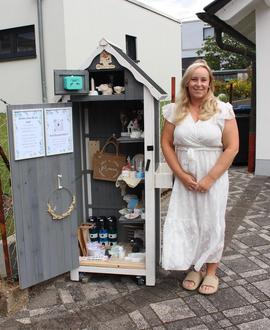 Anfang Juli hat Marina Neumann in Gusenburg an ihrem Elternhaus in der Gartenstraße 4 ein Lädchen der besonderen Art, ein Selbstbedienungsschränkchen, eröffnet. In dem offenen Schränkchen findet der interessierte Käufer handgemachte Geschenke und Mitbringsel, in denen viel Liebe und Handarbeit steckt. Wer einen kleinen Deko-Artikel für Zuhause, eine kleine Geschenkidee oder ein Geschenk für einen besonderen Anlass, wie Geburtstag, Taufe, Gastbesuch ect sucht, wird hier fündig. Es lohnt sich, an dem Selbstbedienungsschränkchen vorbei zu schauen, geöffnet ist dieses täglich von 9 bis 21 Uhr. Bezahlen kann man in bar in einer kleinen Kasse oder man scannt einen QR-Code auf dem Handy und bezahlt über den Bezahldienstleister Paypal.