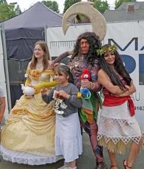 Fantasiegestalten auf der Hermeskeiler Stadtwoche: Maui alias Dan Possible aus der Cosplay-Szene mit filmischen Freunden lockten am Dienstag rund 150 Gleichgesinnte in teils abenteuerlichen Kostümen auf den Festplatz. Zum Gewinn der Platzwette - es sollten 250 sein - reichte es zwar nicht, aber Freibier gabs trotzdem. Die Truppe um Dan Possible sammelte bei ihrem Auftritt 400 Euro Spenden für einen guten Zweck.