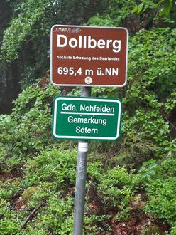 Wer bisher glaubte, der Schaumberg bei Tholey sei mit 568 m der höchste Berg des Saarlandes, muss sich bei einer Wanderung auf der Dollbergschleife bei Neuhütten eines Besseren belehren lassen. Der Dollberg wird gemeinhin mit Neuhütten in Verbindung gebracht, doch sein Gipfel liegt mit 695 m auf der Gemarkung Sötern und stellt somit die höchste Erhebung des Saarlandes dar. Man kann wohl von dort mit einem Stein nach Rheinland-Pfalz werfen, aber Saarland ist Saarland.
