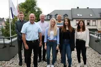 von links: Philipp Killing, Bürgermeister Hartmut Heck, Büroleiter Werner Haubrich, Lara Schmitt, Christoph Dupont, Vanessa Stemper und Sarah Klassen